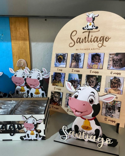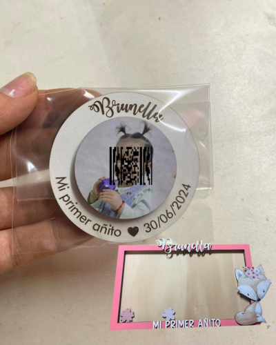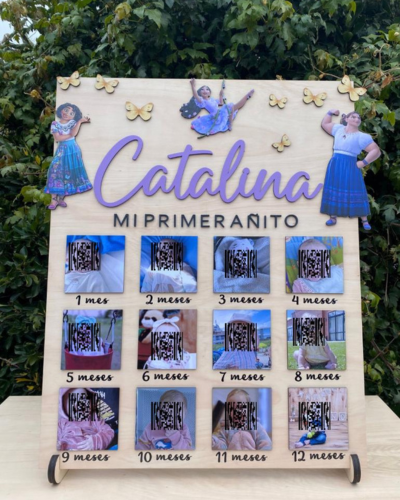 Portarretrato en fibro plus con nombre y apliques a color