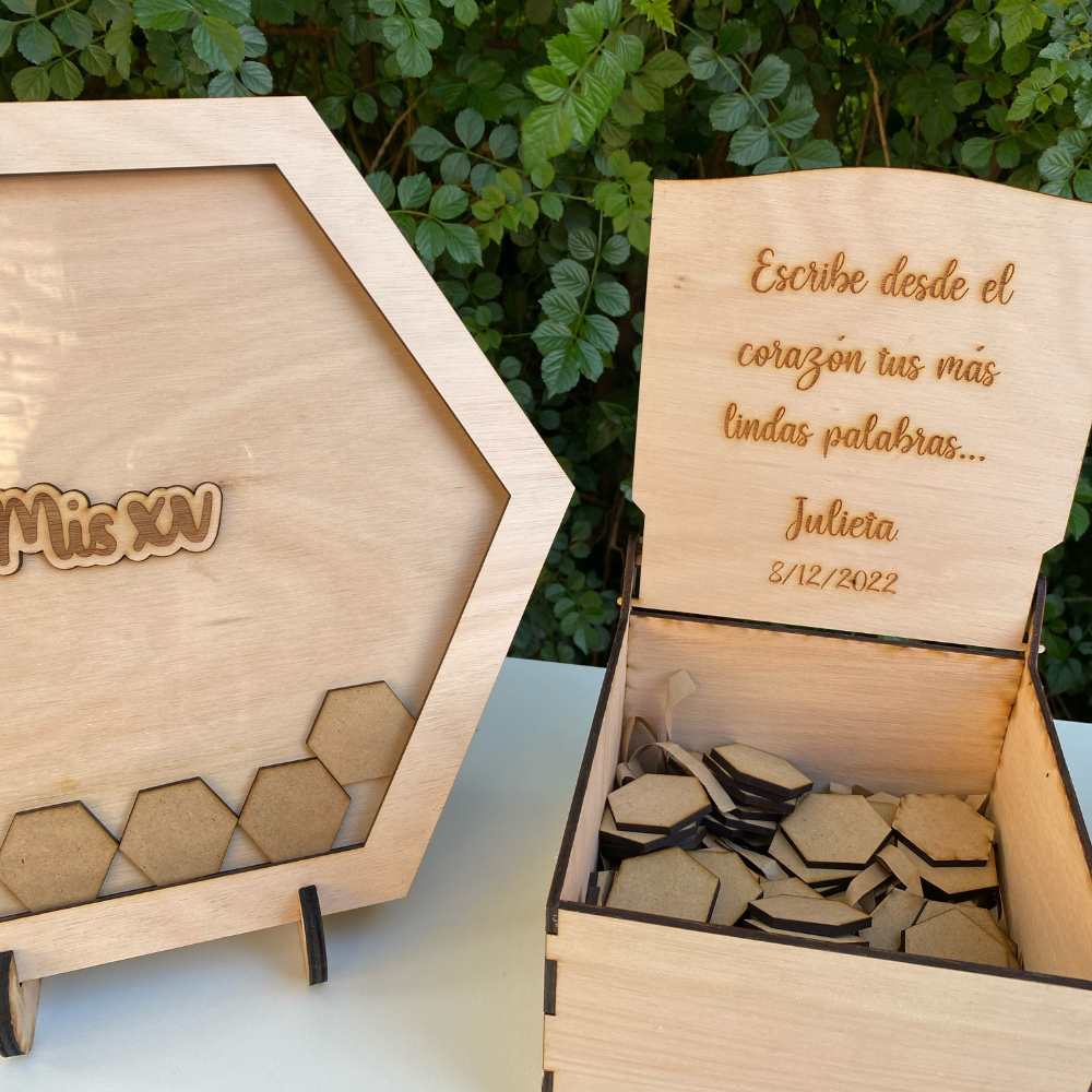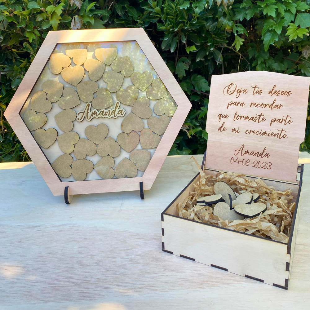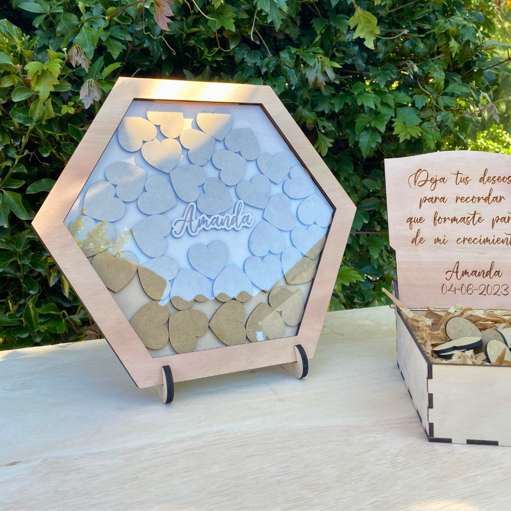 Cuadro de firmas para guardar recuerdos,en forma y fichas de hexágono.