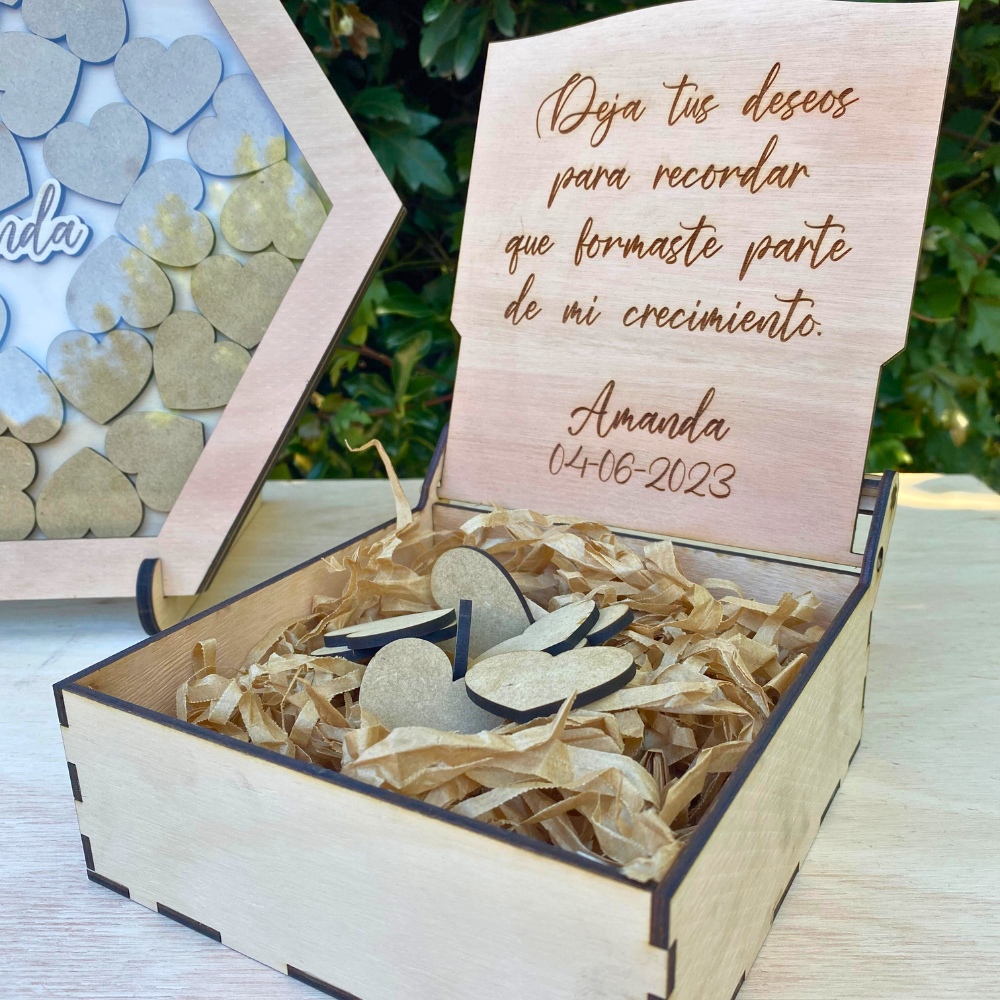 - Caja y soporte de regalo, la frase de la caja se puede personalizar