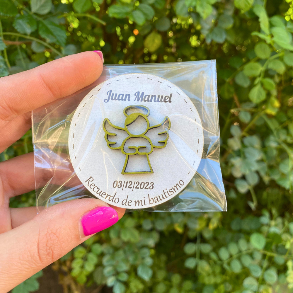 Imanes o llaveros, con fondo blanco o compensado y 1 aplique a color