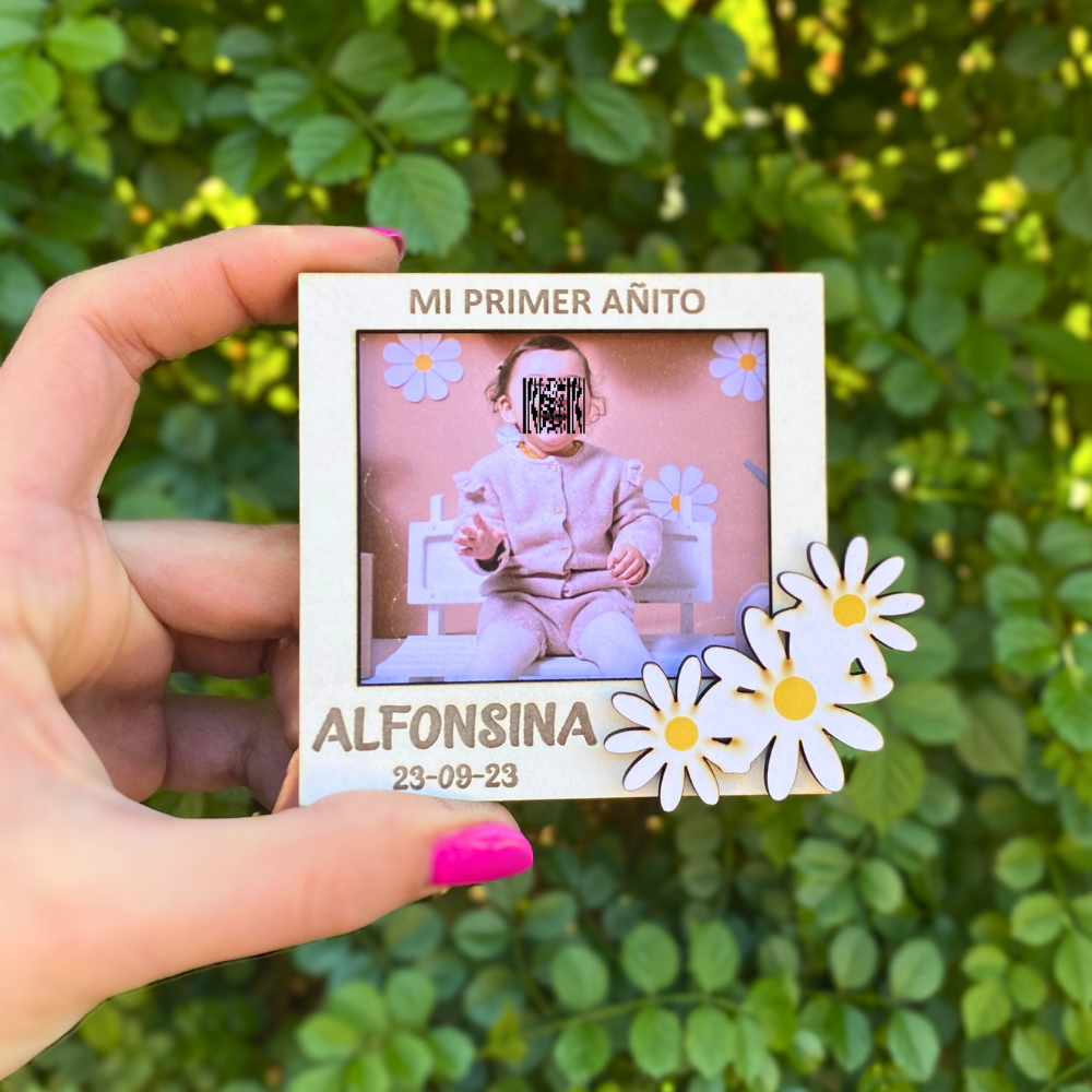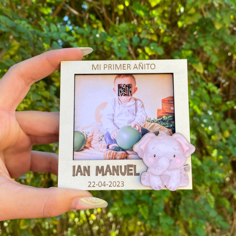Portarretratos con temática personalizada, marco blanco y 1 aplique a color, pueden ser iman o para apoyar.