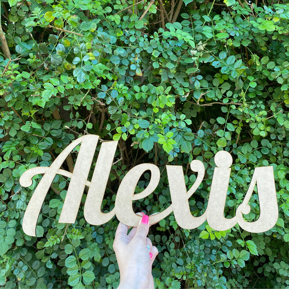 Nombre en cursiva en mdf natural de 3mm, el alto varía según el nombre